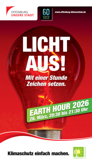 Seit 2014 unterstützt Offenburg die Earth Hour und beteiligt sich jährlich an der Initiative. Die symbolische Dunkelheit in der Stadt steht für ein gemeinsames Engagement, das weit über eine Stunde hinausreicht. Die Earth Hour versteht sich als Aufruf, nachhaltige Veränderungen im Alltag umzusetzen und den eigenen Beitrag zum Schutz des Planeten zu leisten.