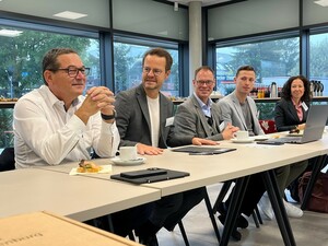 (V.l.) Axel Beck, Executive Vice President ITW, Oberbürgermeister Marco Steffens, Marco Butz, Leiter Wirtschaft und Stadtentwicklung, Marijan Wagner und Regina Zeferer, Wirtschaftsförderung der Stadt Offenburg
