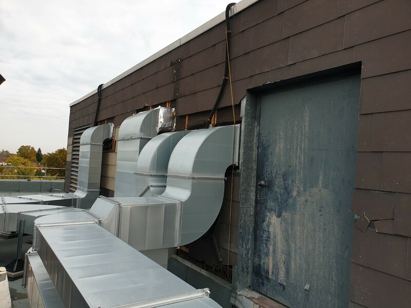Anderseits wurde eine zentrale Lüftungsanlage in den Bereichen, die komplett umgebaut wurden, installiert da die bestehenden Systeme veraltet und nicht mehr den heutigen energetischen Anforderungen entsprachen. Diese wurden in den Klassen- und NWT-Fachräumen gegen moderne energieeffiziente Systeme (zentrale Zu- und Abluftsysteme) ausgetauscht.